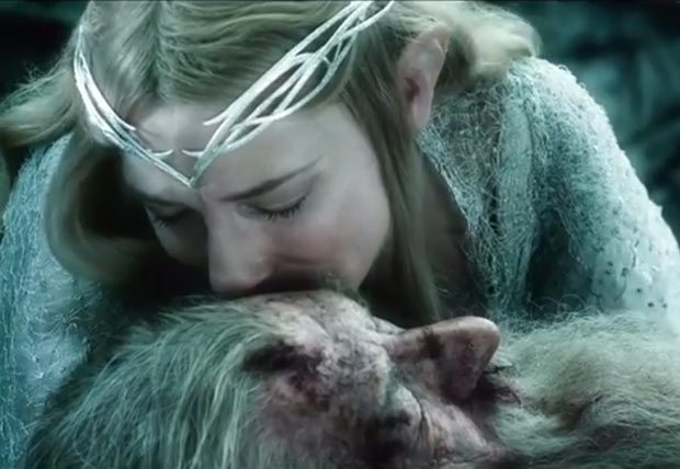 Desde su primera aparición en El Señor de los Anillos, Bilbo Baggins demostró que además de ser un aventurero, es un gran narrador de historias. Por ello no nos sorprende que el hobbit asegure recordar con precisión los acontecimientos vividos al lado de la compañía de Thorin, así como la brutal batalla final. Entre sus memorias el personaje hace mención a aquellos que sobrevivieron y los que no, al tiempo que una imagen nos permite ver a Legolas en compañía de Tauriel.
