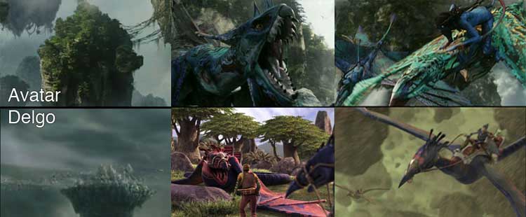 Cuando salió la película de Avatar en diciembre de 2009, los creadores de Delgo película de animación de 2008 se mosquearon por el parecido en ciertas imágenes, argumento y decorados, aunque Avatar consiguió salirse de rositas.