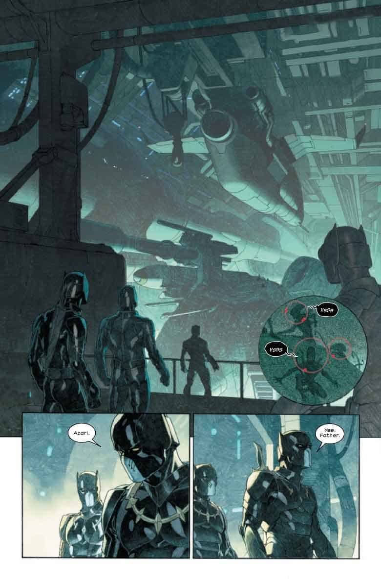 Las imágenes reveladas hasta ahora muestran un entorno oscuro y lleno de tensión, con T’Challa y Azari enfrentándose a los horrores ocultos en la nave. Esad Ribić captura perfectamente la atmósfera opresiva y sombría, mientras que la escritura de Jonathan Hickman garantiza una historia compleja y llena de sorpresas.