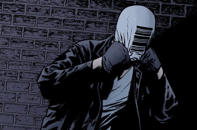 ‘Codeflesh’ sigue la historia de Cameron, un agente de fianzas, ex cazarrecompensas, tiene problemas de pareja, nada fuera de lo común, si no fuera porque es un enmascarado al que le “pone” pelear con personas superpoderosas. Una genial vuelta de tuerca al género superheróico de la mano de Joe Casey, que arrastró con este ‘Code Flesh’ a Charlie Adlard al mundo del freelance y del cómic independiente. Antes de ‘Los Muertos Vivientes’, dibujo esta serie en la que los superpoderosos no llevan colorines, porque la basura de Los Angeles lo mancha todo.