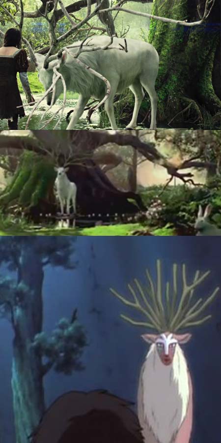 Otro punto a favor son los efectos visuales, muy potentes desde un troll muy bien hecho, batallas increíbles hasta un bosque mágico lleno de criaturas peculiares, como un ciervo que representa al espíritu del bosque, en el momento de verlo se me pasó por la cabeza el ciervo de «La princesa Mononoke» de Hayao Miyazaki del Studio Ghibli. Aquí os dejo la imagen para que opinéis.