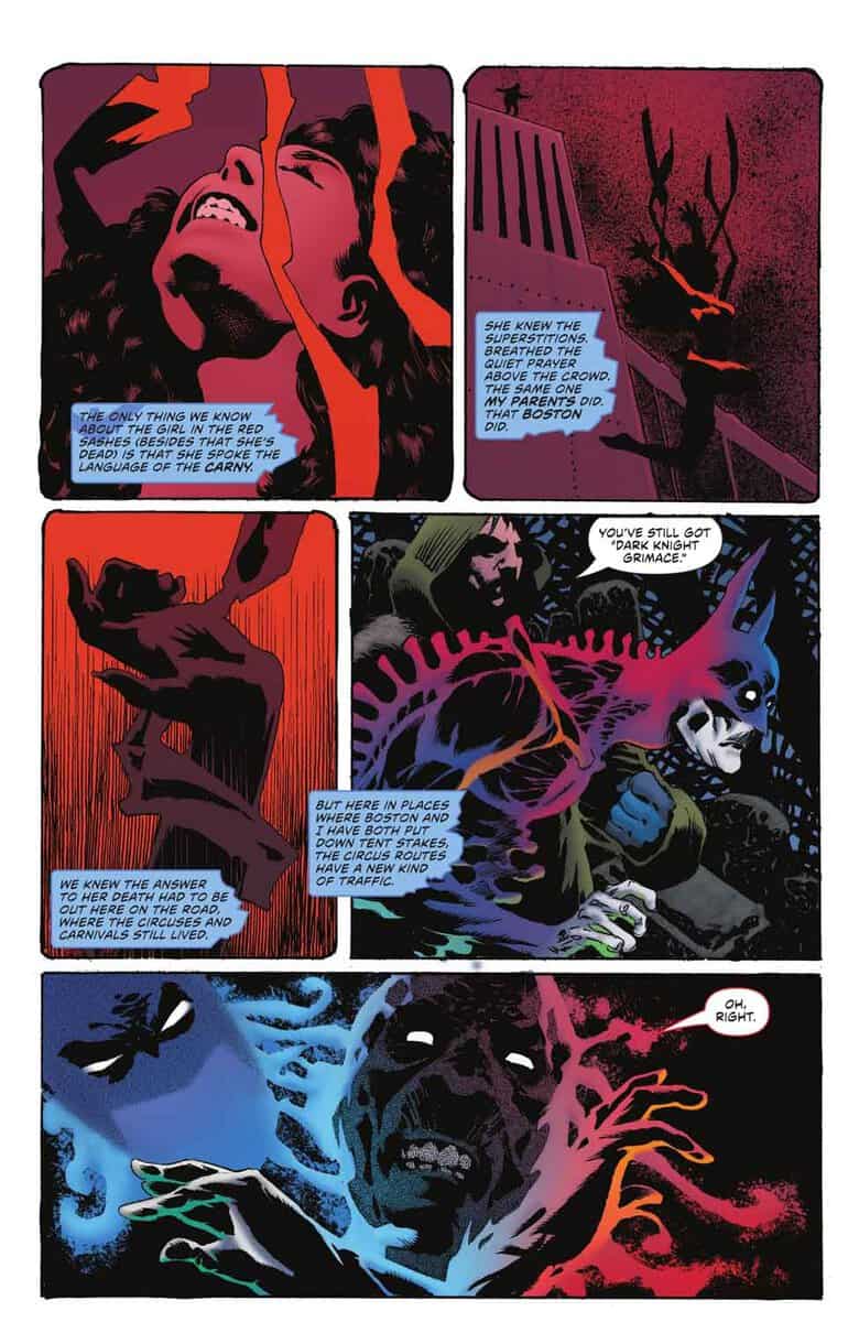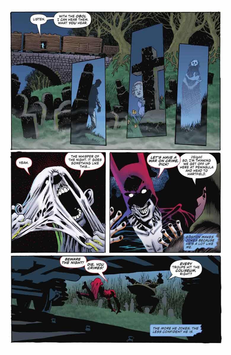 En la segunda parte de la historia centrada en Nightwing, escrita por Tim Seeley y acompañada del arte de Kelley Jones y Michelle Madsen, el personaje de Deadman, uno de los héroes más intrigantes de la Justice League Dark, se convierte en el centro de atención al realizar una mordaz parodia de Batman. Durante su viaje junto a Nightwing, Deadman llegará finalmente en forma de serie de TV, pero con un toque siniestro y humorístico, para hacer una sátira de algunos de los aspectos más exagerados de la personalidad y misión de Batman.
