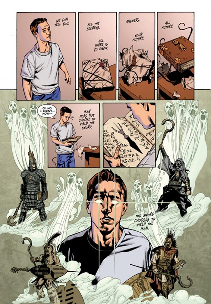 Este primer tomo sirve de presentación de varios elementos de la serie, su protagonista y secundarios, su némesis, y los peligros que conlleva su nuevo poder. Y de paso añade cosas como un baile de graduación entre demonios y vampiros, un grupo de magos callejeros bastante peculiar y hechizos que funcionan mediante apps de móvil. ¿Queríais algo nuevo? Lo tenéis. Y encima esta bien contado, sin convertirse en un manual de magia, sin grandes hechizos ni aspavientos, es un superhéroe, así que lo importante es la acción, los diálogos y la pelea. Un cómic hecho para disfrutar, no para grandes disertaciones filosóficas, enemigos a montón, acciones descabelladas y escenarios imposibles y surrealistas. Pero también tiene hueco para esos misterios que envuelven lo sobrenatural, recuerda lector que “La Espada” elige, y quizás dirija, o acabe dominando. Es la última línea de defensa contra los demonios, ¿cuánto aguantará las tonterías de Rob?