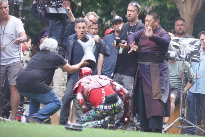 Esta imagen nos muestra a un Bruce Banner tremendamente desconcertado rodando una escena con Iron Man (Robert Downey Jr.) y Wong (Benedict Wong). Pero una mano gris se está acercando peligrosamente hacia su cuello. ¿Qué es esta captura de movimiento? Estas son las 3 posibilidades dadas por Comic Book Movie: