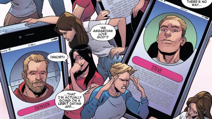 El perfil de Tony Stark (Iron Man) se parece muchísimo al de su inteligencia artificial. Esto hace que Jessica Drew se dé cuenta de que todo el proceso es una estafa. Luego hay personajes como Steve Rogers (Capitán América), Peter Quill (Star-Lord) o Thor que tienen descripciones bastante cursis. En ellas escriben que sus gustos son «bailar y bailar en las películas» o ser «el Dios del Amor de Asgard«. Evidentemente, todo en un tono de parodia tremendamente divertido.