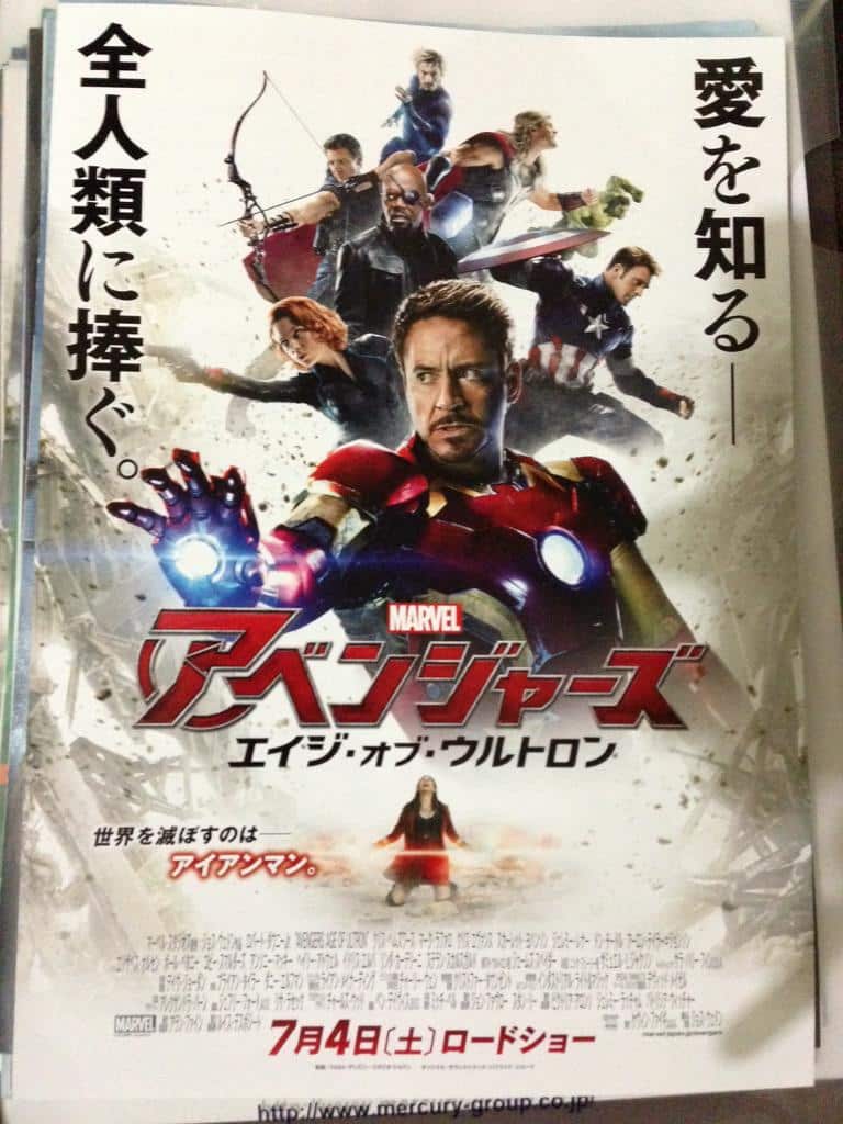 El nuevo póster que nos llega para el estreno en Japón de ‘Vengadores: La era de Ultrón’ muestra como principal protagonista a Robert Downey Jr. como Iron Man, acompañado del resto del equipo de Vengadores y mostrando también como imagen principal aunque en un tamaño más reducido que el resto de sus compañeros a Elisabeth Olsen como ‘La bruja escarlata’, pero de forma más destacada.