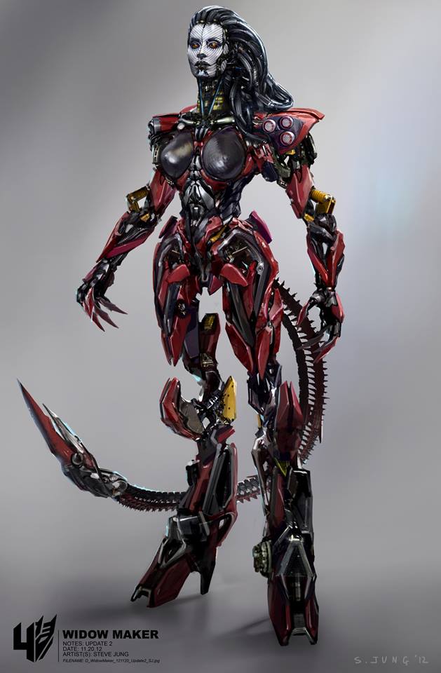 En las ilustraciones de ‘Transformers: la era de la extinción’ podemos ver los diseños realizados para un Decepticon femenino. Además de algunas piezas de fotogramas clave del film.