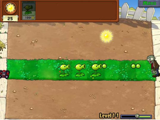Cerezas, girasoles, bellotas… muchos son los tipos de plantas que puedes usar para acabar con los muertos vivientes, pero no te preocupes, no necesitas ser un experto agricultor para defender tu casa de esas horrendas, y a la vez graciosas, criaturas. La mecánica del juego consiste en recoger a base de clicks los soles que expulsan los girasoles, cuantos más soles tengas más plantas puedes colocar en el jardín (convertido en campo de batalla) y utilizar, de vez en cuando, un arma de destrucción masiva, como las cerezas, que, al plantarlas, fulminan a todo lo que tienen a su alrededor. O bellotas, que derriban a los zombis como si de bolos se trataran.