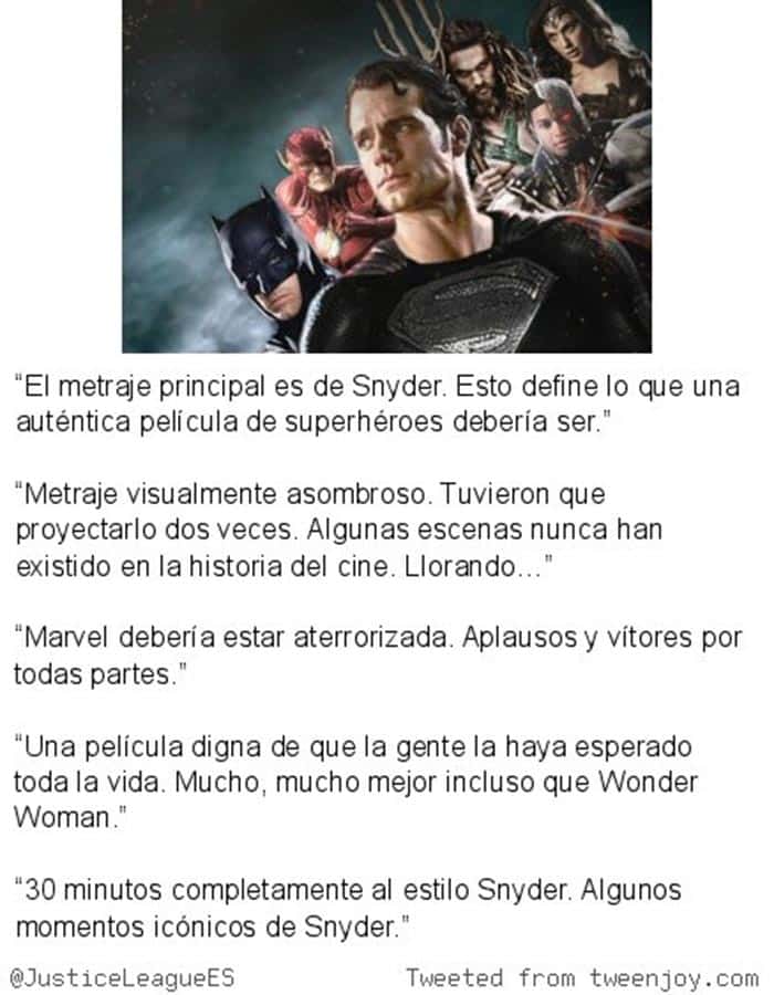 - «Es una película digna de que la gente la haya estado esperando toda su vida. Mucho, muchísimo mejor incluso que ‘Wonder Woman'».