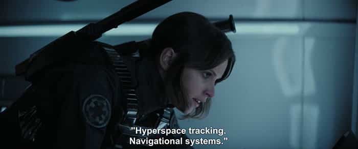 La imagen que colocamos sobre estas líneas nos muestra a Jyn Erso (Felicity Jones) durante su misión de infiltración en Scarif con Cassian Andor (Diego Luna). Mientras intentan localizar los planos de la Estrella de la Muerte en el catálogo del Imperio Galáctico (antes de leer «Estrellita«) pasan por delante de esta información. También se incluyó el concepto «Black Saber» que los más fanáticos tomaron como referencia al sable mandaloriano usado en ‘Star Wars Rebels‘. Pablo Hidalgo, uno de los máximos responsables del canon actual de Star Wars, confirmó este easter egg inmediatamente.