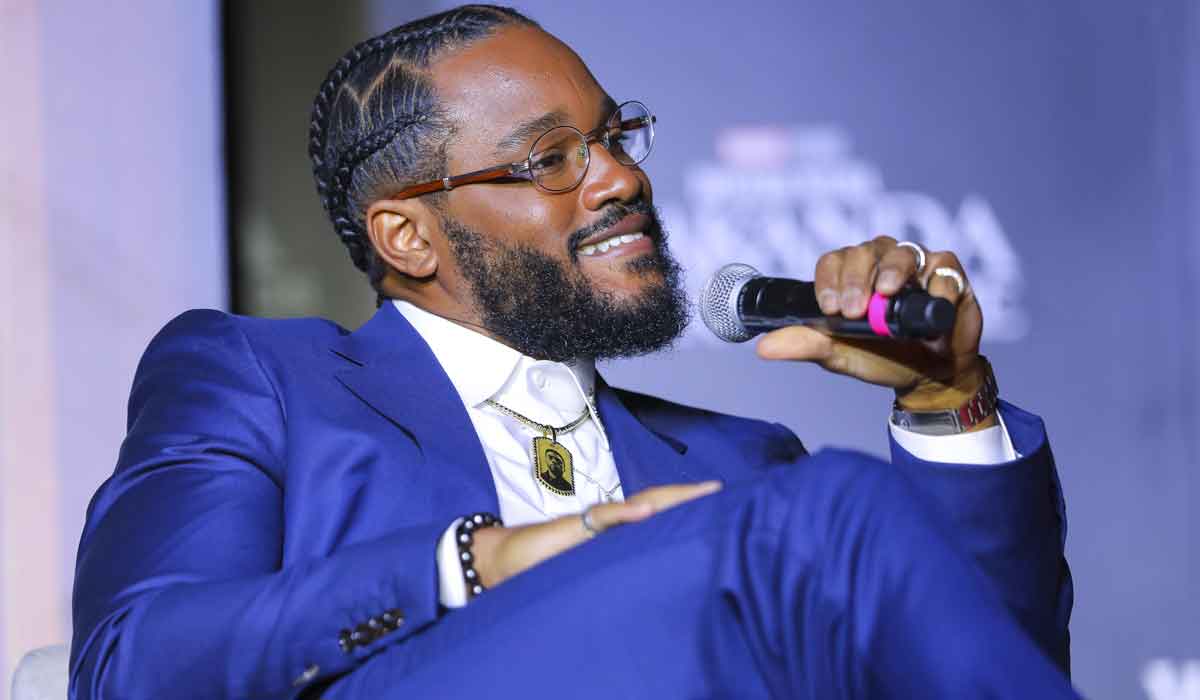 MEXICO CITY, MEXICO – NOVEMBER 09: Director Ryan Coogler speaks during the Wakanda Forever Red Carpet in Mexico City at Plaza Satelite on November 09, 2022 in Mexico City, Mexico. (Photo by Agustin Cuevas/Getty Images for Disney)