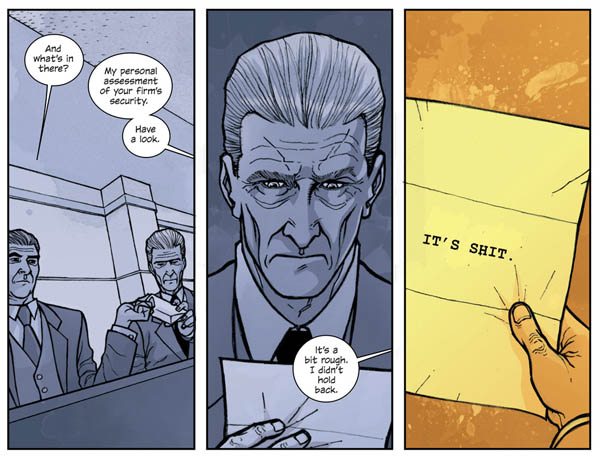 Hickman lanza una trama inteligente y llena de matices, con alguna sorpresa y mas de un giro del guión. Pero sobre todo crea unos personajes carismáticos, incluso el más detestable tiene su punto atractivo. La temática de una historia de espías es el secreto y la acción, y ‘Secreto’ las tiene, a montones. Pero sobre todo es una historia de familia, de honor entre ladrones, o espías, y de las relaciones que tienes que proteger, o vengar. Pura novela negra mezclada con una historia de espionaje. Poco se puede contar de la historia sin estropear parte de la trama, así que si queréis saber más, tendréis que darle la oportunidad al cómic.