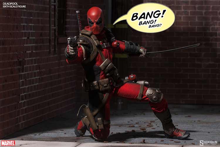 Sideshow Collectibles ha revelado las imágenes de ‘Deadpool’ el primero de una nueva línea de figuras de acción sexta escala que incluirá también a personajes como Lobezno, El castigador y una serie de personajes de que aún ha desvelado la prestigiosa marca de figuras. Como podéis ver, la figura cuenta con un gran detalle, así como un buen número de accesorios, incluyendo «Headpool» y una variedad de armas. Es una figura indispensable para cualquier fan del personaje (que será el protagonista de su propia película en 2016, posiblemente PG-13 ) disponible en Amazon por 229.84 Euros.