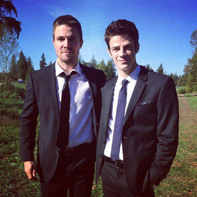 Además, una nueva imagen del set de rodaje de una de las dos series de CW nos traen a Stephen Amell (Oliver Queen) y Grant Gustin (Barry Allen) juntitos de nuevo. Eso sólo puede significar una cosa… ¡Crossover a la vista, señores! Os dejamos la imagen para que vayáis dando saltitos: