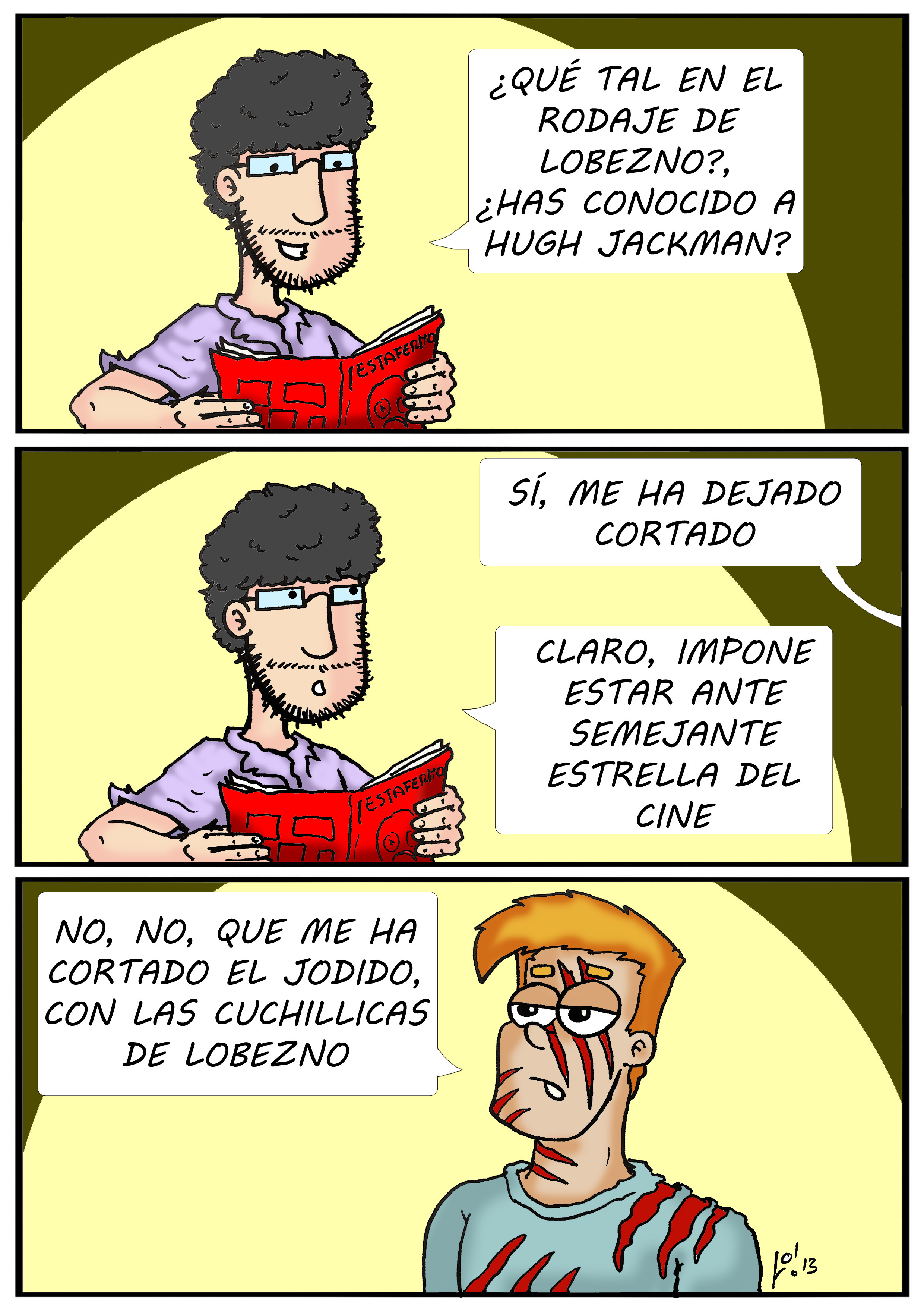 Tras su andadura por el Telecupón, Willy ha vuelto a su trabajo de extra de cine en Hollywood. Nuestro amigo friki ha conseguido un pequeño papel de figurante en ‘Lobezno inmortal’, trabajo que le ha permitido conocer a la estrella Hugh Jackman. Un encuentro que ha dejado marcado, y nunca mejor dicho, a Willy…