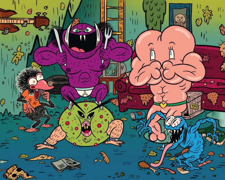 Detengámonos un momento en ‘Secret Mountain Fort Awesome’, ambas series son hermanas y no solo porque compartan creador. Festro, un monstruo violeta con colmillos y más feo que usar el pomo de la espada de Conan para desgarrarse el ano, es el principal protagonista de esta serie y su origen es ni más ni menos que el piloto, antes mencionado, de Tito Yayo. Como no podía ser de otra manera, ‘Secret Mountain Fort Awesome’, es otra paranoia de proporciones épicas, protagonizada por un grupo de cinco monstruos marginados por alienantes y feos (si, eso de la imagen es un bicho hecho de nalgas) y relegados a vivir en una montaña igual de siniestra que ellos.