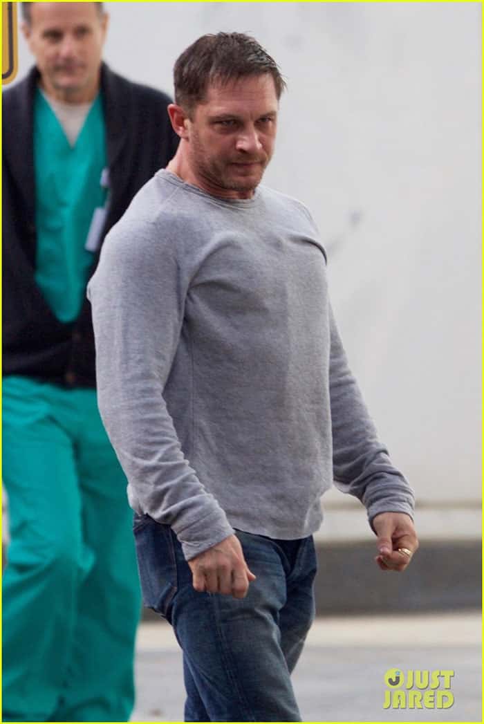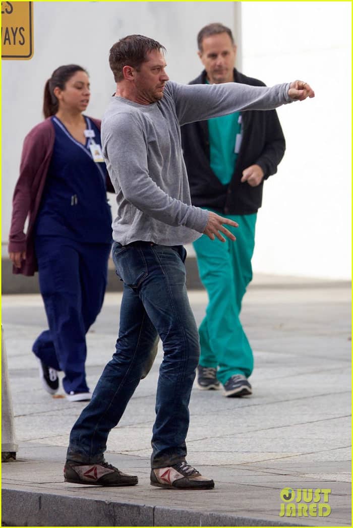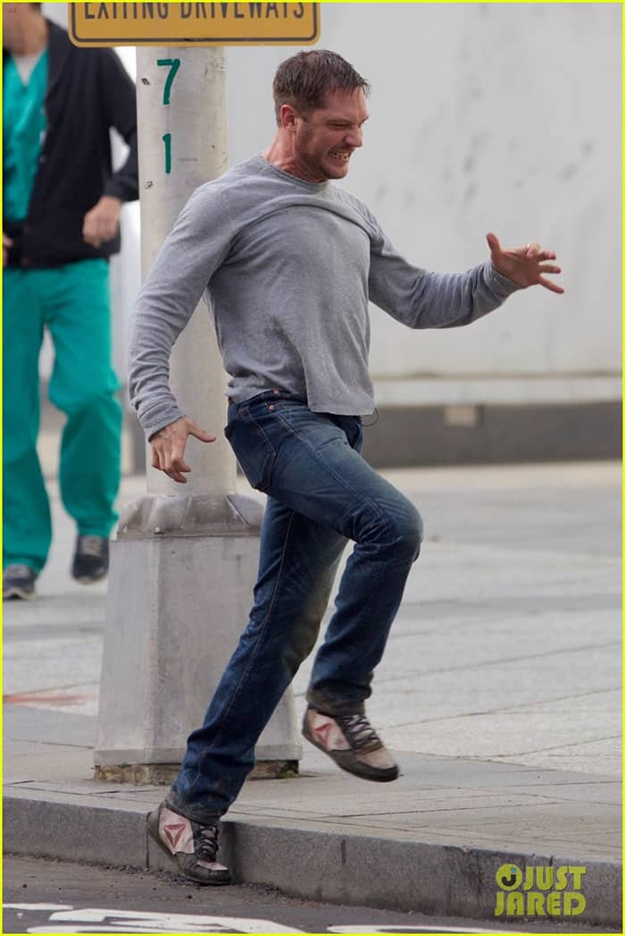 Tom Hardy hace cosas muy raras en el rodaje de ‘Venom‘. Las últimas imágenes cazadas en el set de rodaje y publicadas por Just Jared nos muestran el momento en el que el actor (por lo visto en las capturas) está interpretando a Eddie Brock mientras se convierte o lucha por no convertirse en el simbionte Veneno de Marvel Comics. Compartimos las fotografías a continuación: