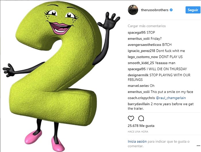 El tráiler de ‘Vengadores: Infinity War‘ saldrá dentro de 2 días. Así lo han confirmado los directores de la película de Marvel Studios, los hermanos Russo. Tras publicar ayer una imagen con un número 3, hoy los cineastas han compartido la siguiente imagen en su cuenta de Instagram personal: