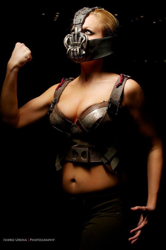 Bane es un peligroso enemigo de Batman. Pero aquí os mostramos fotos de como podría ser como mujer. Os habéis preguntado alguna vez ¿Y si Bane hubiera sido una chica? pues bien Nicole Marie Jean nos trae unas espectaculares imágenes en las que aparece caracterizada del villano de El caballero oscuro: La leyenda renace en su versión femenina.